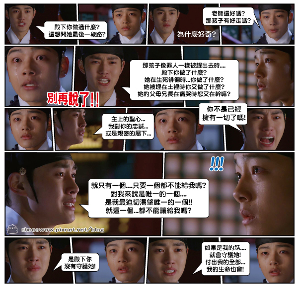 因為太后為了拱寶鏡上后位竟然要國巫對煙雨以咒執行死刑,前面光預知未來還不夠,現在連咒語都可以殺人的時代還有什麼是不可能的呢?編劇運用怪力亂神這個主題真的是big idea,鬼怪題材一向是觀眾喜歡的口味,因為很有想像力也容易顯得精彩新鮮,將來有牽強的劇情時也可用此化險為夷,實在高招!!!話說巧喀媽看到這裡一邊擦淚一邊咒罵韓國人無知”這種事情怎麼可能發生啊!!”但還是一邊按下play,真的很好笑!!